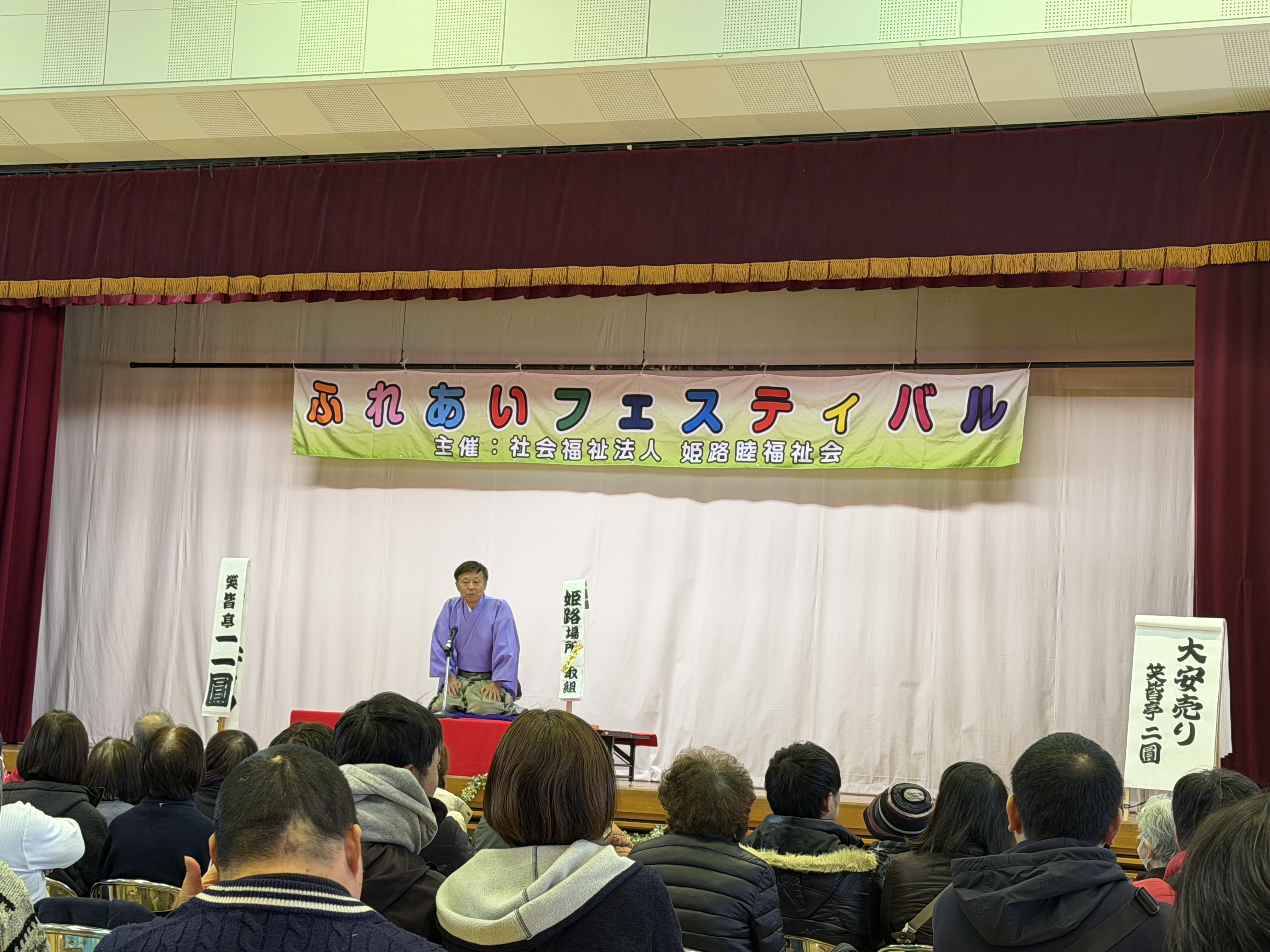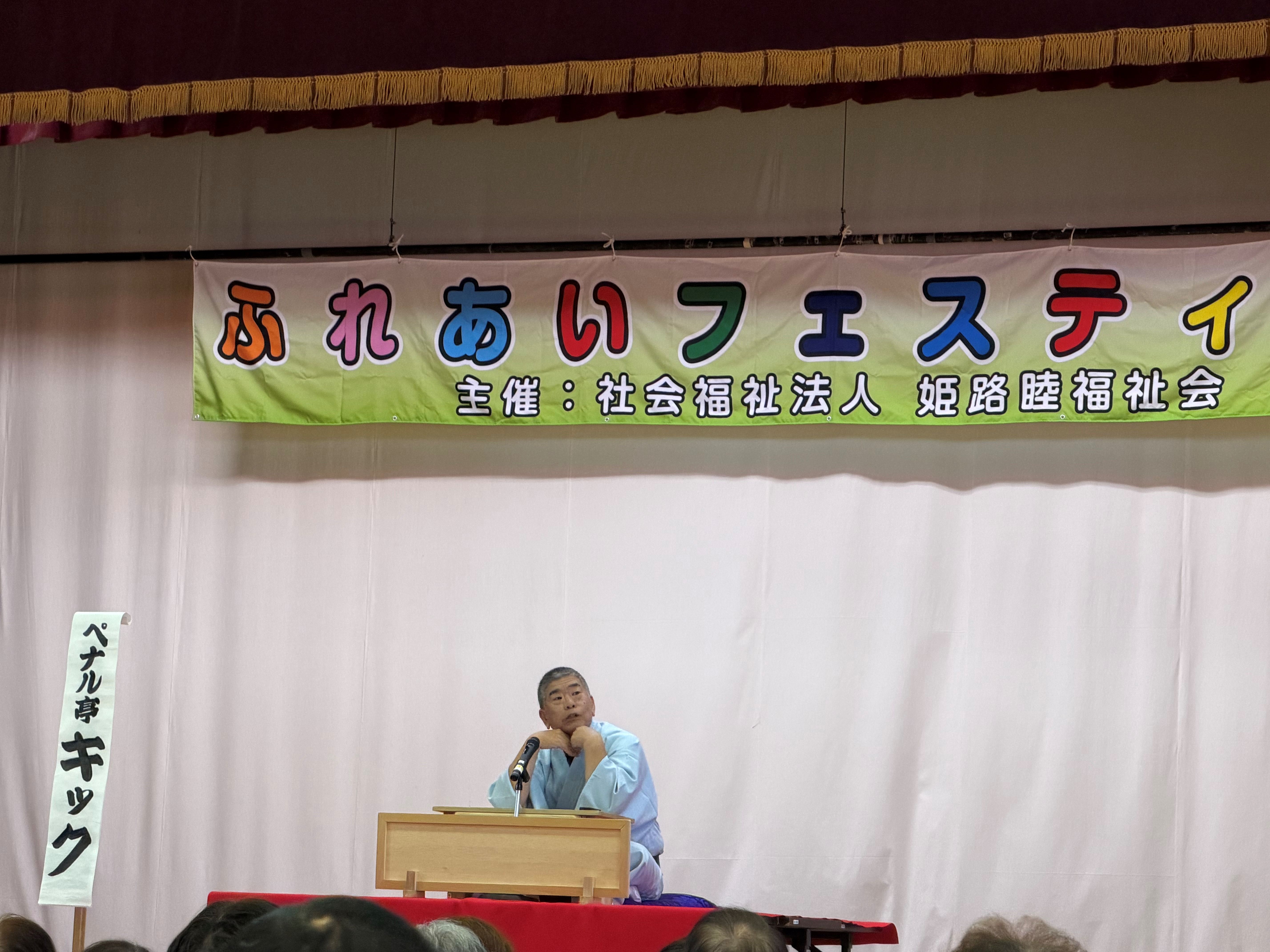 続いては落語。姫路を中心として活躍されている。ペナル亭キックさん「桃太郎」笑皆亭二圓さん「大安売り」の二つのお話を披露していただきました。どちらも笑いが起きるようなお話でした。