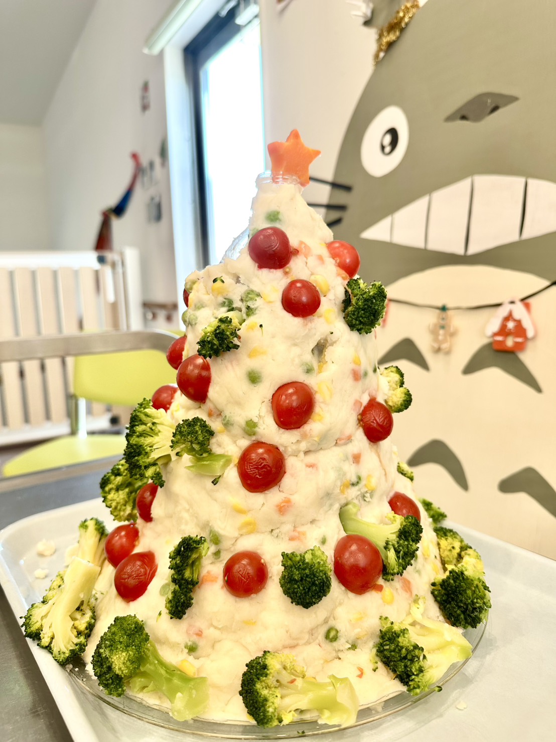 迫力満点・圧巻のポテトサラダタワーがでました✨倒れないよう慎重に運びながらの配膳はハラハラしました💦