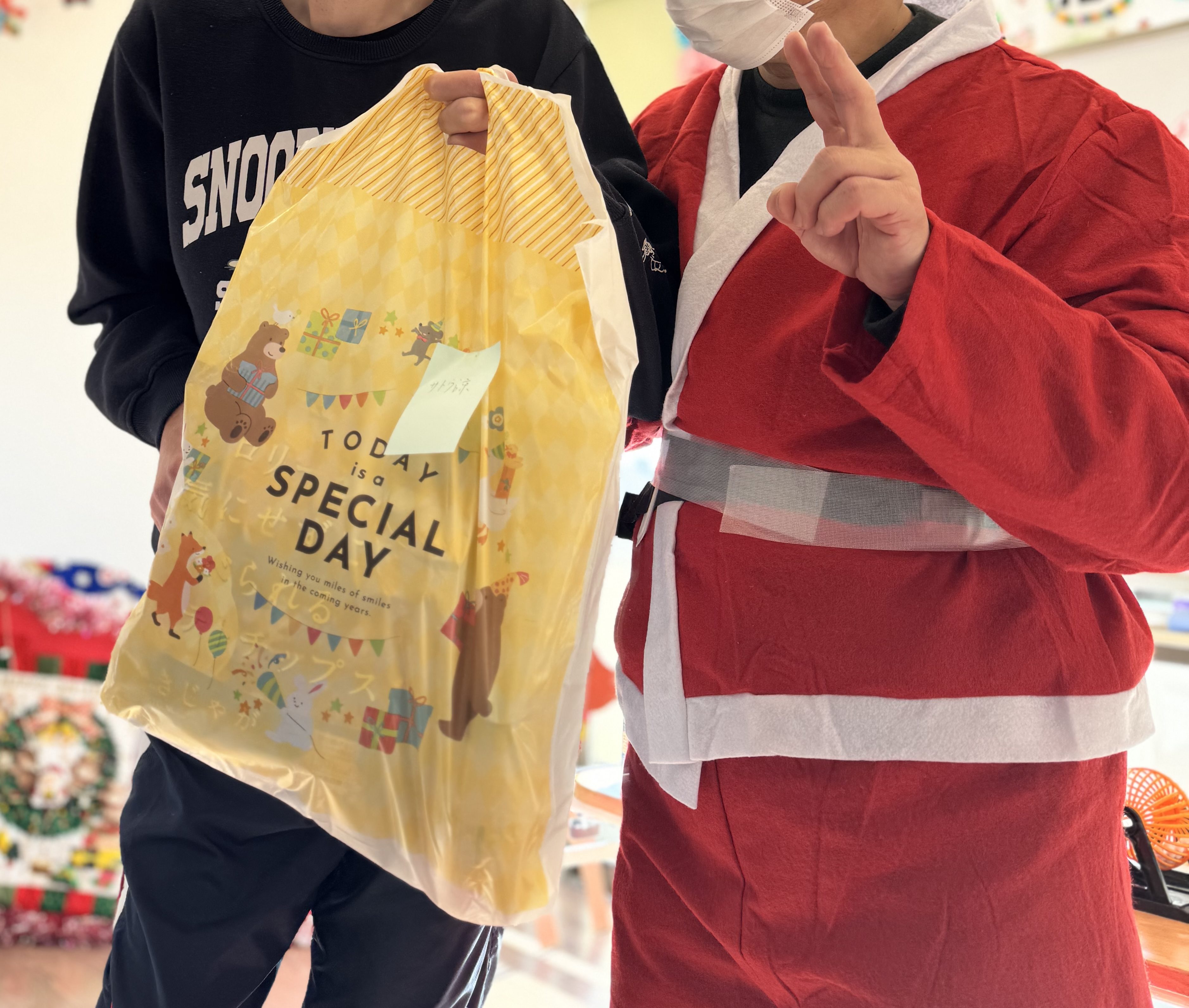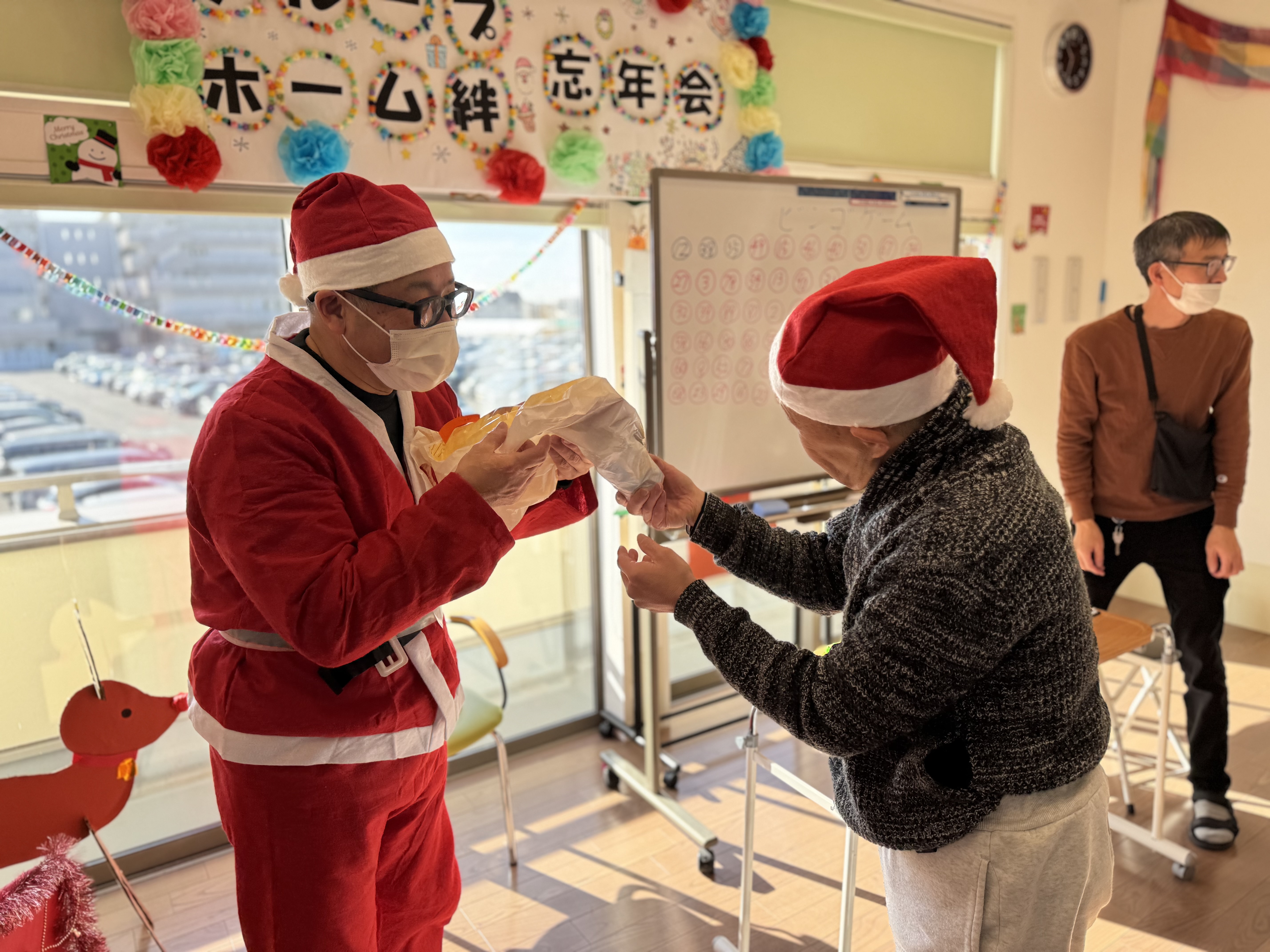 プレゼント贈与はなんとビンゴ形式で。利用者全員が「ビンゴ!」と声をだして、プレゼントをしっかり受け取れました🎅